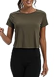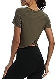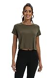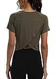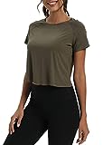 Mippo Crop Workout Tops Gym Shirt Athletic Wear Yoga Apparel Exercise Fitness Crop Top Going Out Tshirts Dance Pilates Clothes for Women Army Green M