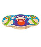 ALEX Toys Active Play Monkey Balance Board helps kids improve their balance and coordination. Perfectly sized for little feet–yet able to accommodate larger ones–this sturdy wooden wobbly board features an adorable monkey graphic. Designed for ages three and up, the board supports balancers up to 200 pounds, making it suitable for the entire family to enjoy. Easy for adults to assemble, this balance board provides durability and fun that can be used indoors as well as outdoors. Includes platfo