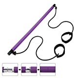 Artoflifer Exercise Resistance Band Yoga Pilates Bar Kit Portable Pilates Stick Muscle Toning Bar Home Gym Pilates with Foot Loop for Total Body Workout (Purple)