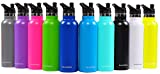 BalanceFrom Double-Wall Vacuum Insulated Stainless Steel Water Bottle, 3 Caps Included, Wide Mouth and Standard Mouth, Multiple Colors and Sizes