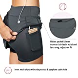 - Headphone cable hole & mesh pockets – headphone cable hole for easy access headphones, pocket on each leg of comfortably compressive mesh short stows your essentials, like 4.7” phones, keys, etc.