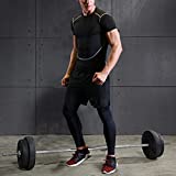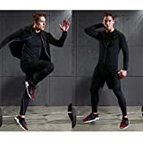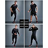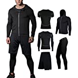 BUYJYA 5Pcs Men’s Compression Top Pants Long Sleeve Fitness Suit Workout Set (Black, XL)