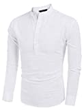 COOFANDY Men’s Cotton Linen Henley Shirt Long Sleeve Hippie Casual Beach T Shirts White