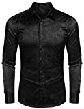 COOFANDY Mens Floral Rose Printed Long Sleeve Dress Shirts Prom Wedding Party Button Down Shirts (Black)