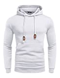 COOFANDY Men’s Hooded Sweatshirt Long Sleeve Fashion Gym Athletic Hoodies Solid Plaid Jacquard Pullover with Pocket White