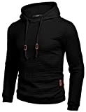 COOFANDY Men’s Sweatshirt Hipster Gym Long Sleeve Drawstring Hooded Plaid Jacquard Pullover Hoodies Black