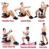 • Economic All in One Exercise Equipment. This all in one exercise equipment make it possible to do Sit Up, Push Up, Cycling, Scissors Kick, Triceps Extension, Pectoral Extension, Shoulder Press, Arm Curls, Biceps Curl and Lunges with only one exercise equipment. Fits for people who want to build up good body shape without spending much money on gym or fit club, enable you to workout your whole body at home or office.