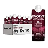 Evolve Plant Based Protein Shake, Berry Medley, 20g Vegan Protein, Immune Support, Vitamin C & Zinc, Dairy Free, No Artificial Sweeteners, Non-GMO, 10g Fiber, 11oz, (12 Pack) (Formula May Vary)