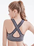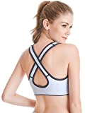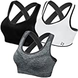 FITTIN Crossback Sports Bras Pack of 3 – Padded Seamless Med Support for Yoga Workout Fitness Removable Pads L