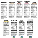 - WHEY & VEGAN VARIETY 9-PACK: All 9 of our flavors! Whey protein smoothies – 1 Strawberry Banana, 1 Banana Cocoa, 1 Mixed Berry, 1 Tropical, 1 Coffee and 1 Sweet Potato Apple. Vegan smoothies – 1 Mango Coconut, 1 Berry Acai, and 1 Chocolate Strawberry.