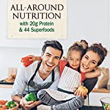 - On the go nutrition: 20 grams of clean, organic plant protein with 44 superfoods including organic grass juices, fruits and veggies and 6 grams of fiber to keep you satisfied
