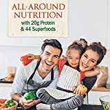 - ON-THE-GO NUTRITION: 20 grams of clean, organic plant protein with 44 superfoods including organic grass juices, fruits and veggies and 6 grams of fiber to keep you satisfied