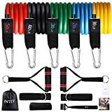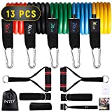 - 【ONLY ONE SET (13 PCS) FOR WORKING OUT】INTEY resistance band set including 5 levels Tube Fitness Exercise bands, 1 door anchor, 1 waterproof carry bag, 2 cushioned handles, 2 ankle straps and 1 protective. Compared to other brands, stretch bands for exercise men provide a protective cover. It can protect the surface of resistance band from wear when you use them in tree trunk/poles in the park or stand on the exercise tube bands while fitness.