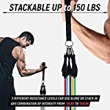 - 【STACKABLE 150 LBS STRENGTH FOR VARIOUS WORKOUT NEEDS】5 different resistance levels Workout Bands set with handles can be used alone or combination these different 5 levels based on your fitness routine. Each Exercise band has its own carabiner clips, making it easier to switch the handles to take your workout to the next level.