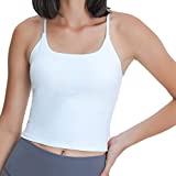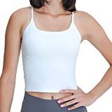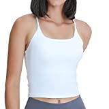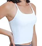Lemedy Strappy Back Tank Top for Women with Built in Bra Workout Yoga Shirts (White, L)