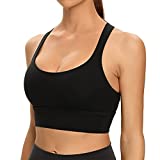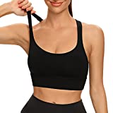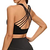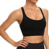 Lemedy Women Cross Back Sports Bra Fitness Yoga Strappy Longline Crop Tank Top (Black, M)