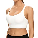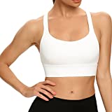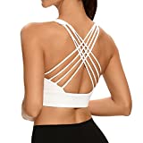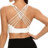 Lemedy Women Cross Back Sports Bra Fitness Yoga Strappy Longline Crop Tank Top (White, M)