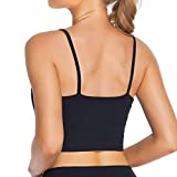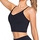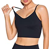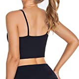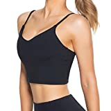 Lemedy Women Padded Sports Bra V Neck Fitness Workout Shirts Yoga Crop Tank Top (Black, M)