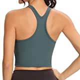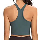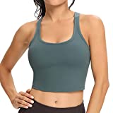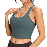 Lemedy Women Racerback Sports Bra Removable Padded Workout Yoga Crop Tank Top (Grey Green, M)