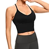 Lemedy Women Sports Bras Strappy Longline Fitness Padded Workout Yoga Running Crop Tank Tops (Black, Small)
