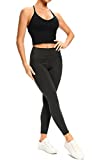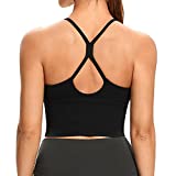 Lemedy Women Strappy Longline Removable Padded Sports Bras Workout Yoga Running Crop Tank Tops (Black, Large)