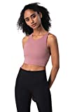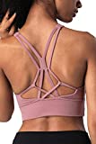 Lemedy Women Strappy Sports Bras Padded Medium Support Yoga Workout Tank Top (S, Cameo Pink)