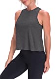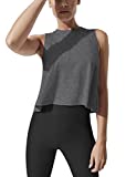 Mippo Cropped Workout Tops for Women Cute Workout Shirts Sleeveless Tops Womens Crop Muscle Tanks Flowy Loose Crop Tops High Neck Tank Tops Heather Gray M