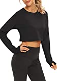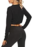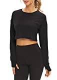 Mippo Long Sleeve Crop Tops for Women Workout Shirts Long Sleeve Athletic Gym Tee Shirts Cropped Sweatshirts Womens Activewear Tops Fitness Exercise Clothes Black S