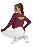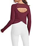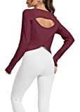 - OPEN BACK – Long sleeve workout tops have a slit in the back, which is enough to keep it interesting and show off a cute sport bra