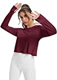 - CROP TOP – Long sleeve crop top with a loose fit design, the length just enough to cover your belly without being too exposed, keeping you cool after exercise