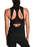 Mippo Workout Tank Tops for Women Open Back Yoga Tops Backless Workout Shirts Muscle Tank Athletic Running Gym Tank Tops Loose Fit Sports Gym Clothes for Women Black S