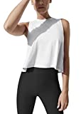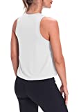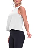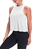 Mippo Workout Tops for Women High Neck Workout Tank Tops Cropped Workout Tops Womens Muscle Tank Athletic T Shirts Crop Tees Summer Clothes White S