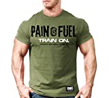 Monsta Clothing Co. Men’s Bodybuilding (Pain is Fuel) Gym T-Shirt (G:MG-A:WT/BK) Military Green