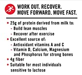 - Workout; Recover; Move forward; Move fast; 25 grams high quality protein; 160 calories; 0 grams sugar; 4 grams fiber; Excellent source of antioxidant vitamins A and C; Excellent source of vitamin D, calcium, magnesium and phosphorus for strong bones
