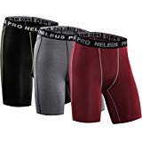 Neleus Men’s 3 Pack Compression Short,047,Black,Grey,red,US M,EU L