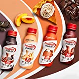 - Try all ten (10) delicious smooth and creamy flavors: Chocolate, Vanilla, Caramel, Cookies & Cream, Cafe Latte, Strawberries & Cream, Peaches & Cream, Bananas & Cream, Cinnamon Roll and Chocolate Peanut Butter.Skip the hassle of protein powder with the convenience of this ready to drink protein shake; great on the go nourishment that also pairs well with coffee, cereal, a pancake recipe, or in your favorite smoothie.NOTICE: Use this product as a food supplement only. Do not use for weight reduction