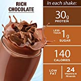 - Ready to drink shakes: Our new & improved Non-GMO ready to drink shakes have 30g of protein per serving to help support muscle strength. Our protein shakes are low-fat, gluten free, with 140 calories, 24 added vitamins & minerals & less than 1g sugar