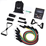 - Perfect Set for Personal Home GYM: The resistant bands set includes 5 exercise bands with different resistance, 1 door anchor, 1 bands protective sleeve and 1 figure 8 exercise cord , 2 cushioned handles, 2 ankle straps, 1 waterproof carrying bag and guide book.