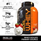 Rivalus Rival 100% Whey Protein Isolate Primary Source, Strawberry, Clean Nutritional Profile, BCAAs, No Banned Substances, Made in USA, Orange and Black Container, 80 Oz
