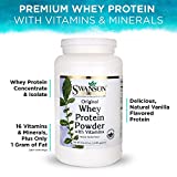 - PROTEIN PLUS VITAMINS & MINERALS – Not all protein powders are created equal. Some come loaded with added sugars and sweeteners that can run counter to your health and fitness goals. Swanson Premium Brand Whey Protein powder delivers a combination of whey protein isolate and concentrate along with sixteen vitamins and minerals. If you’re looking for a vanilla protein shake that is good for your entire body, consider Swanson Whey Protein.