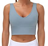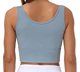 THE GYM PEOPLE Womens Longline Sports Bra Padded Crop Tank Tops Workout Yoga Bra with Removable Pads (Denim Blue, Small, s)