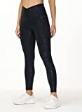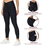 THE GYM PEOPLE Women’s V Cross Waist Workout Leggings Tummy Control Running Yoga Pants with Pockets(Black Leopard, Small)