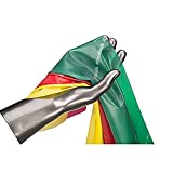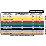 - Each band measures 5 Foot long X 5 Inch wide and comes in three color-coded resistance levels: Yellow-3-4.3 lbs.; Red-3.7-5.5 lbs.; Green-4.6-6.7 lbs.