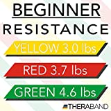 TheraBand Resistance Band Set, Professional Latex Elastic Bands for Upper & Lower Body, Core Exercise, Physical Therapy, Lower Pilates, At-Home Workouts, & Rehab, 5 Foot, Yellow, Red & Green, Beginner