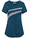 Vindery Womens Workout Tops, Ladies Short Sleeve Drifit Yoga Shirt Running Tees Gym Tops Athltic Clothing Fitness Apparel Blue-S