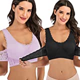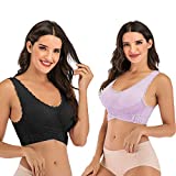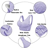 Vorcy Sports Bras for Women Lace Front Cross Side Buckle Lounge Bra with Removable Pads for Yoga Sleep Daily Wear