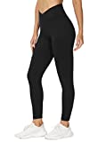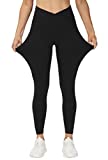 Women’s V Cross Waist Yoga Leggings High Waisted Tummy Control Workout Running Pants Black