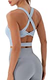 Workout Tops for Women Criss-Cross Back Padded Sports Bras for Women Medium Support Womens Crop Tops Light Blue